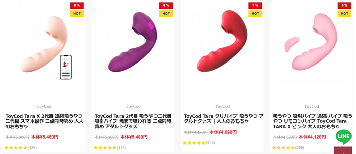 吸うやつを多く扱っているBeYourLoverでtoycod taraを見てみると、3000円台から6000円台のtoycod taraが販売されています。