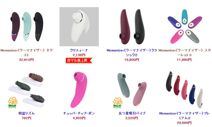 Amazonでウーマナイザーと検索するとたくさんの商品が出てきます。中にはウーマナイザーではないラブグッズも登場します。