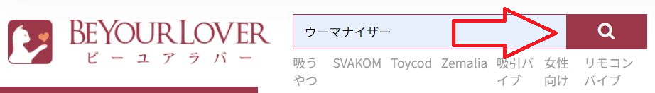 BeYourLover公式サイトで、検索窓に「ウーマナイザー」と入力してクリックすると、ウーマナイザーの一覧が表示されます。